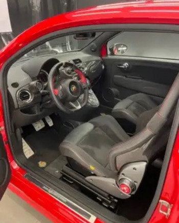 A l’extérieur, la voiture est finie en rouge Scuderia, avec des rétroviseurs extérieurs en fibre de carbone et des détails comme les roues et les prises d’air arrière en gris Racing Grey. Cette Abarth est équipée de projecteurs au xénon avec fonctions feux de croisement et feux de route pour améliorer l’émission lumineuse et l’efficacité dans toutes les conditions climatiques. Fabriqués par Magneti Marelli Automotive Lighting, ces éléments offrent trois fois l’intensité lumineuse et la durabilité des phares halogènes standard.